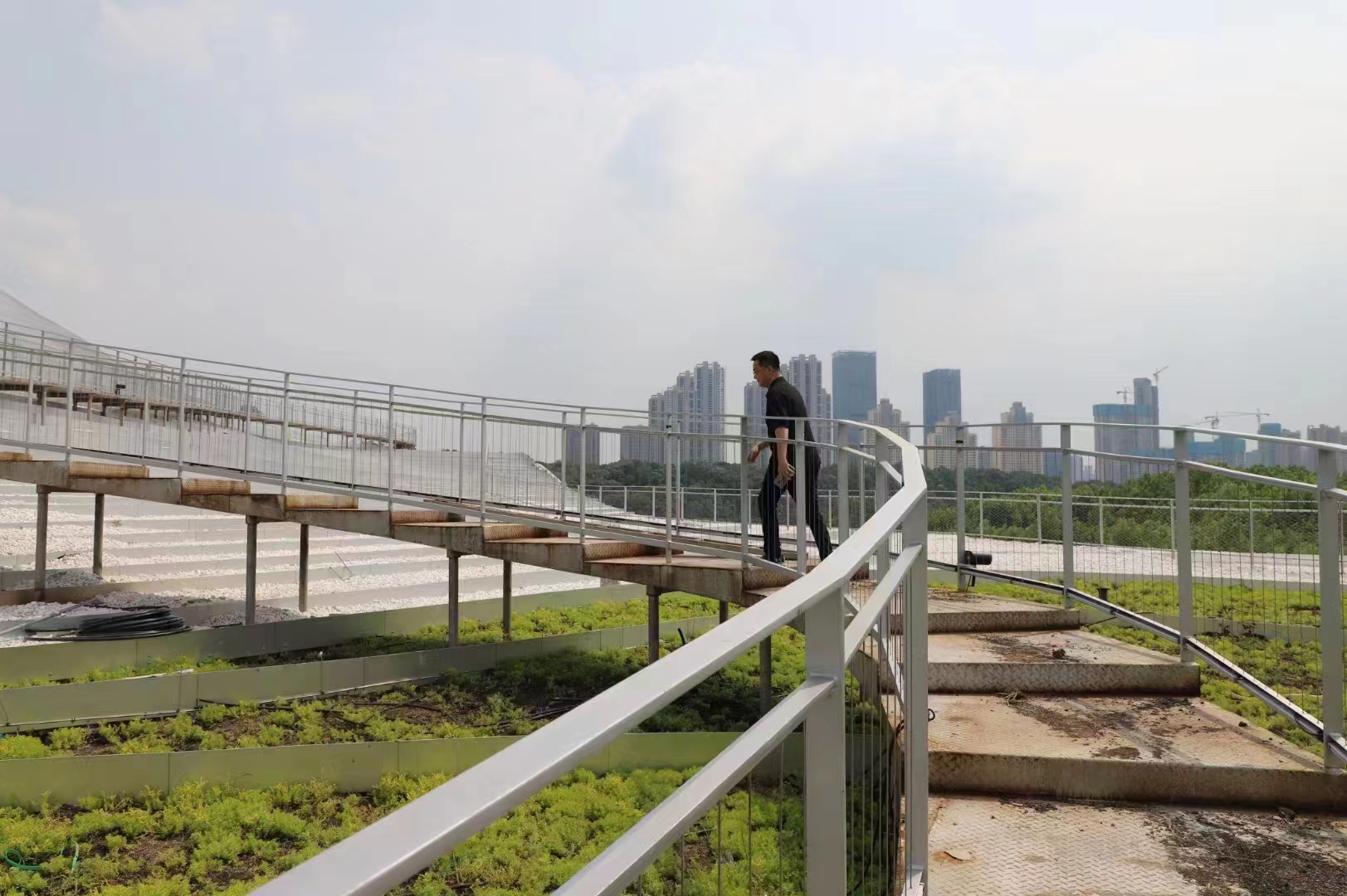 屋頂棧道是琴臺館獨特的存在,它構成了獨立于美術館展覽空間之外的公共空間系統,聯系了月湖公園,也串聯了展廳出口、公教空間、藝術品商店、咖啡廳等不同的公共空間。而這一棧道,正是頂尖國際當代藝術家奧拉維爾·埃利亞松的作品。他為琴臺館的屋面棧道創作了燈光藝術裝置“8種顏色的路徑”,棧道的顏色將隨著人們經過感應而改變色彩。這種空間的公共性將使琴臺館建筑超越孤立的視覺形象,人們的活動也成為建筑表面的一部分。