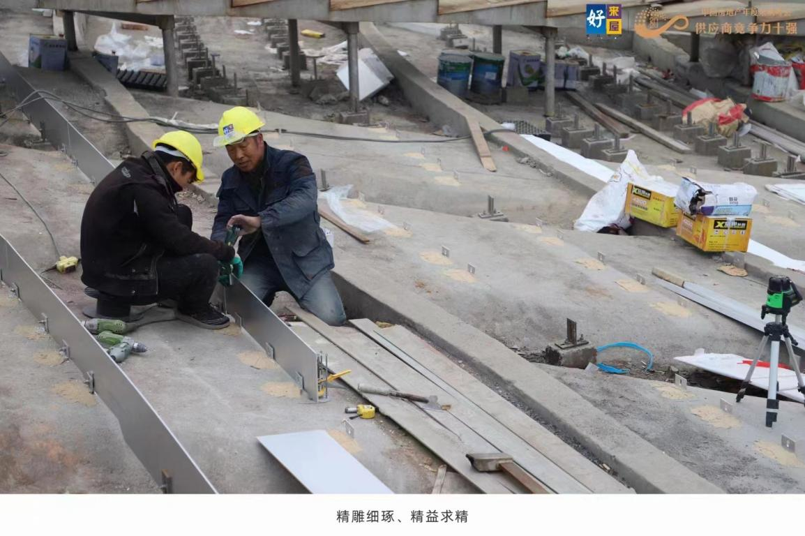 2019年,好來屋承接琴臺美術館屋面鋁板工程,施工團隊在進行鋁板拼接時,必須確保每一組鋁板整體造型與主體結構一致,基本每塊鋁板弧度都不一樣,不能批量作業,只能依靠工人一塊塊仔細拼接;每一塊石頭經過精挑細選,邊邊縫縫,精細打磨,彰顯工匠精神。我們可自豪的說武漢琴臺美術館最美殼體是由武漢好來屋裝飾工程有限公司負責承建,真正將公司一直以來秉承的“城市建筑美容師 ,美好生活締造者”這一中心思想貫徹到底。