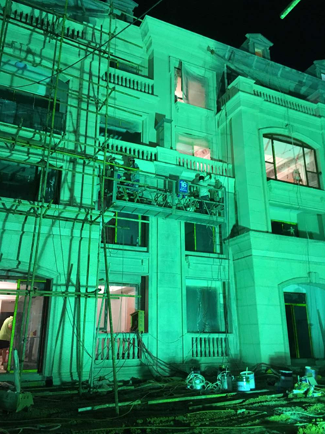 項目事跡:為配合甲方對外營銷展示,在8月份,室外溫度高達40°酷暑下,我司工人連夜奮戰17小時,中暑工人數達10余人,5天搶下別墅外墻涂料工程,使項目如期對外開放。