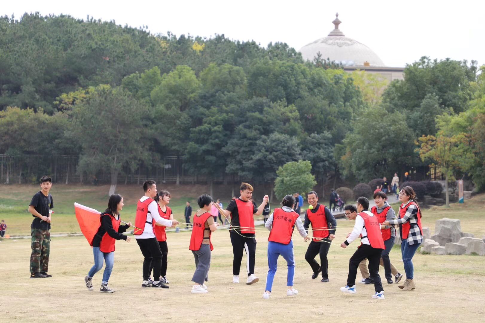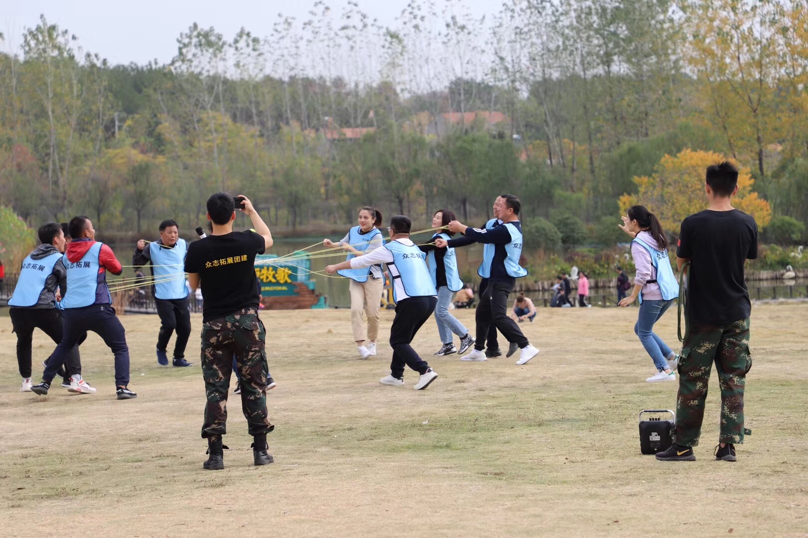 在分隊比賽中,隊員們發揮個人的潛能,以最短的時間出色地完成了“花開花落”、“鼓動人生”、“挑戰99秒”、“我們是一家人”等一系列具有挑戰性和針對性的項目;顒蝇F場氣氛熱烈,歡呼聲、吶喊聲、助威聲不絕于耳。