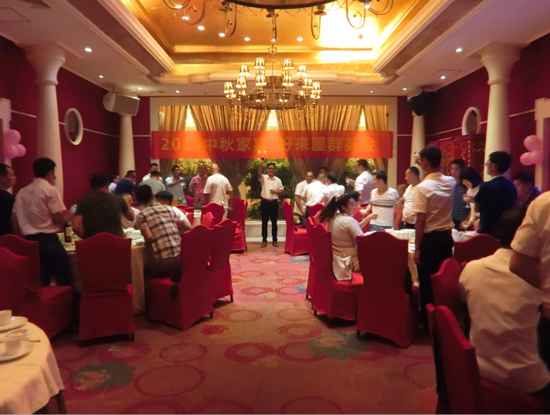 中秋佳節,大家歡聚一堂,公司于9月17日6點在胡錦酒樓舉行了中秋家宴暨群英答謝會,感謝公司各位員工一直以來的辛勤工作與付出,感謝各位班組和材料商長期以來對我們工作的支持與配合。 聚餐開始,行政部